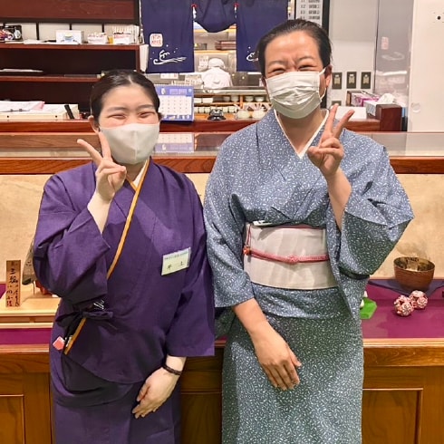 着物は正直動きづらいですし、「しっかりした接客をしないと…!」と最初は少し緊張しましたが、着ると自分がシャン!として上品になれた気がします。親が来店して、接客を見てくれた時、とても褒められました!